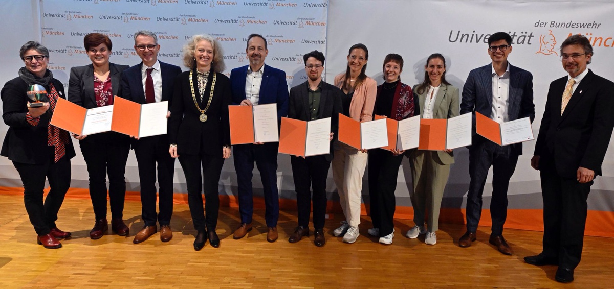 Beim diesjährigen Dies Academicus der UniBwM wurden wieder zahlreiche herausragende Leistungen in Forschung, Lehre und Engagement gewürdigt. Präsidentin Prof. Eva-Maria Kern, Vizepräsidentin Prof. Isabelle Deflers und Vizepräsident Geralt Siebert überreichten die Preise und sprachen ihre Glückwünsche aus.