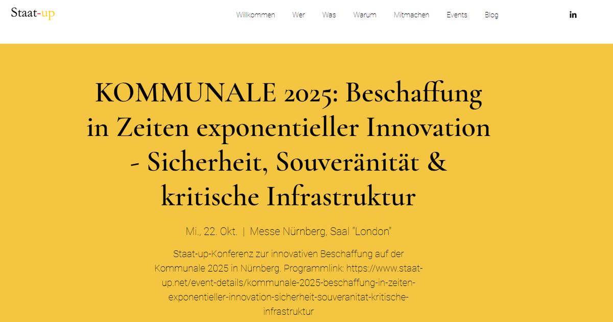 Die Staat-up-Konferenz war Teil des Rahmenprogramms der KOMMUNALE 2025 und verdeutlichte, dass innovative Beschaffung zunehmend zu einer zentralen Aufgabe für Kommunen und Landesbehörden wird.