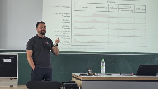 Daniel Fleischer, Studierender im Jg. 2025 und Design and Development Engineer bei HENSOLDT, bot uns einen sehr anschaulichen Praxiseinblick in sein Tätigkeitsspektrum bei HENSOLDT.