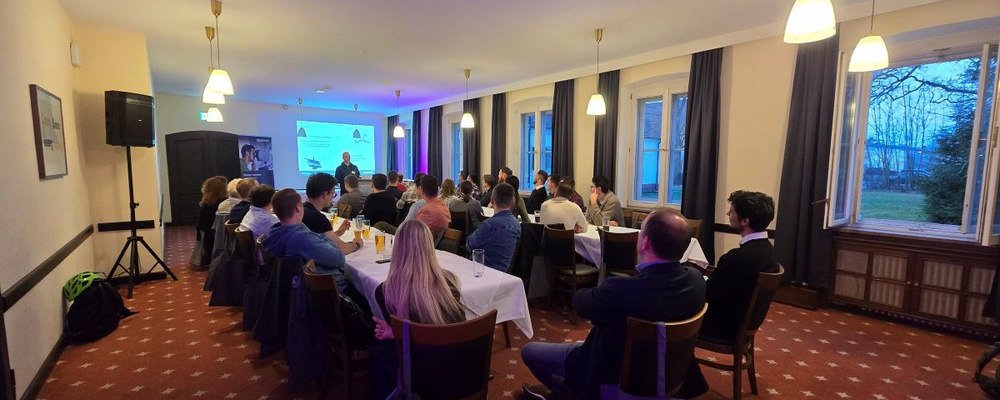Daniel Fleischer, Studierender im Jg. 2025 und Design and Development Engineer bei HENSOLDT, bot uns einen sehr anschaulichen Praxiseinblick in sein Tätigkeitsspektrum und seinen Arbeitsalltag in der Abteilung Tracking für Boden-Radaranwendungen bei der Firma HENSOLDT in Ulm.