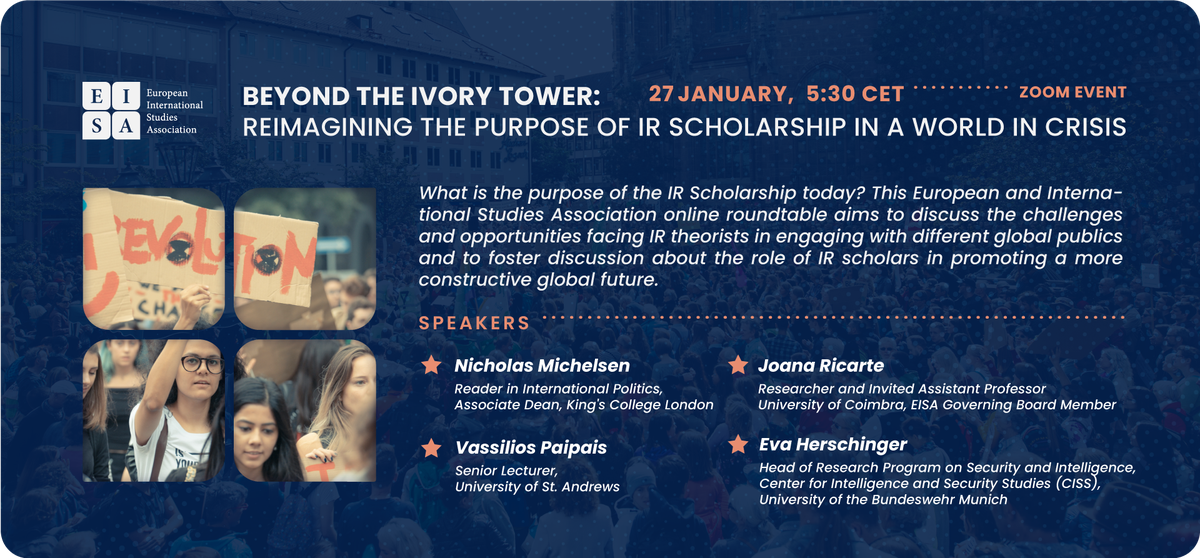 The aim of EISA's online roundtable is to discuss the challenges and opportunities facing IB theorists today and to initiate a discussion about their own role in promoting a more constructive global future. The roundtable will explore not only the history and sociology of “public IB theorists”, but also the translation issues that can arise when academic knowledge meets public discourse, and how the purpose of the IB can be reconceptualized to go beyond the confines of ivory towers and protest marches.