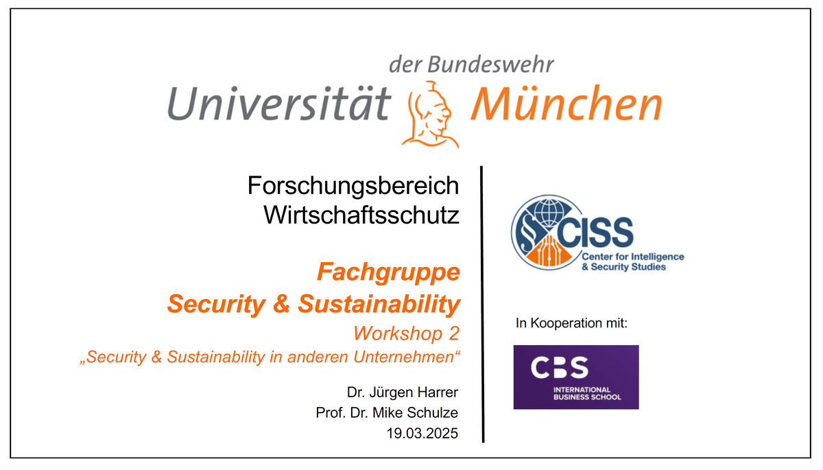 Workshop 2 der Fachgruppe "Security & Sustainability" des Forschungsbereichs Wirtschaftsschutz am CISS