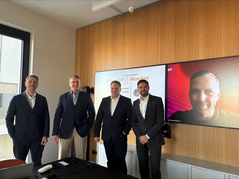 (v.l.n.r.: Robert Braun (Siemens Healthineers); Dr. Jürgen Harrer (CISS); Prof. Mike Schulze (CBS); Karan Singh (Lufthansa); Zsolt Szabo (E.ON))