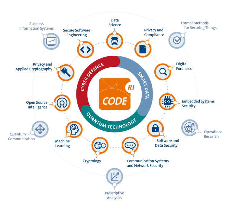 CODE conducts research in three business areas: Cyber Defence, Smart Data and Quantum Technology. The third-party funded projects are carried out in various research groups. © RI CODE