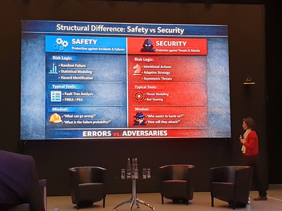 Andreas Krüger (Founder & CEO, Laokoon Security) highlighted the fundamental differences between the disciplines: While functional safety aims to protect the environment from possible system malfunctions, cybersecurity is designed to protect systems from a dynamic and potentially hostile environment.