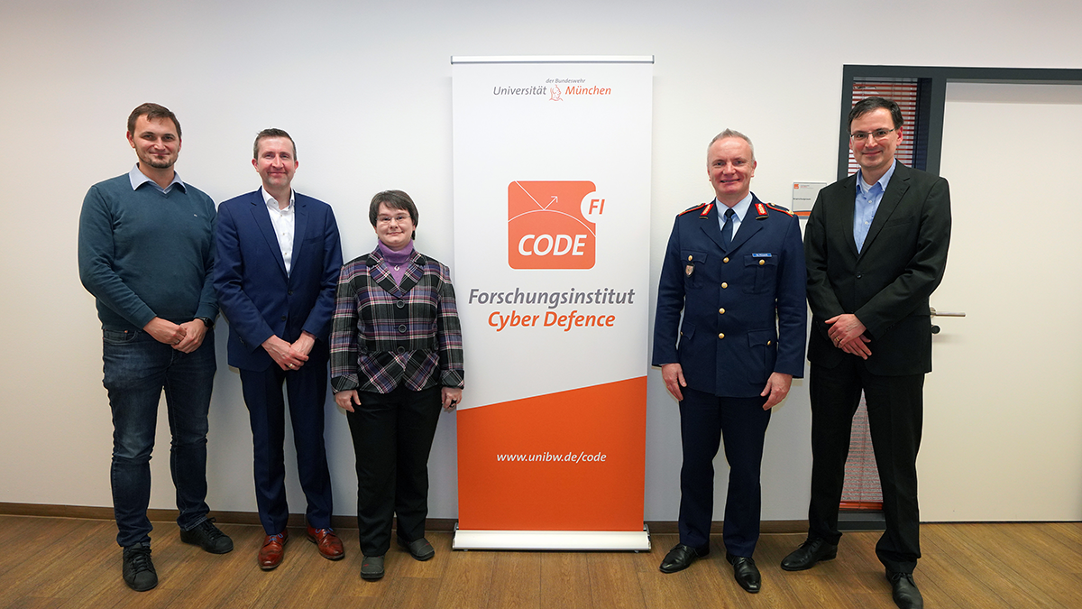 In mid-January, Dr. Volker Pötzsch, Head of Cyber/Information Technology Sub-Department I at the German Federal Ministry of Defence (BMVg), visited the Research Institute CODE. During his visit, the brigadier general learned about the dtec.bw research project MuQuaNet and the Cyber Range, among other things.