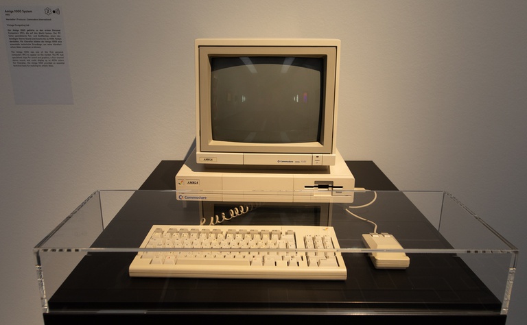 Ein derartiges System der Firma Commodore aus dem Jahr 1985 konnte die datArena aus der Sammlung Wolfgang Kainz-Huber, Vintage Computing Lab (VCL), für die Ausstellung zur Verfügung stellen.