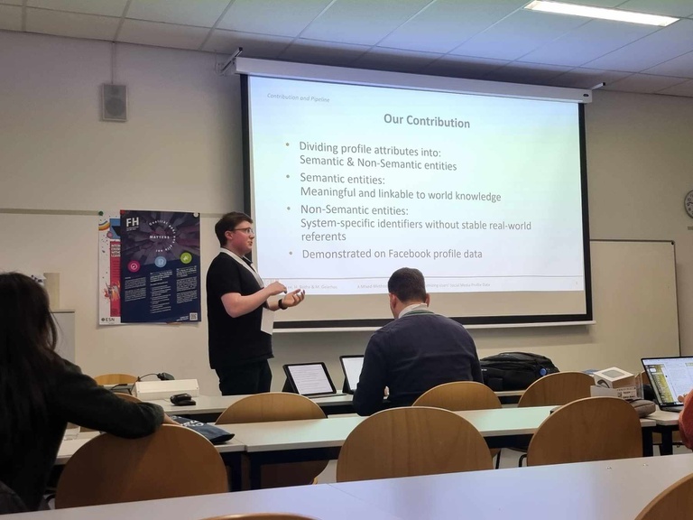 The Chair of Data Science was represented by Yeong Su Lee and Hendrik Bothe – speaker and session chair. Their presentation, “A Mixed-Methods Approach to Pseudonymizing Users' Social Media Profile Data,” introduced a method for pseudonymizing data entities in social media datasets. The chosen approach is intended to prevent conclusions about real persons from being drawn, while still containing information that allows meaningful conclusions to be drawn about correlations (e.g., number of persons with an employer in the IT or automotive industry).