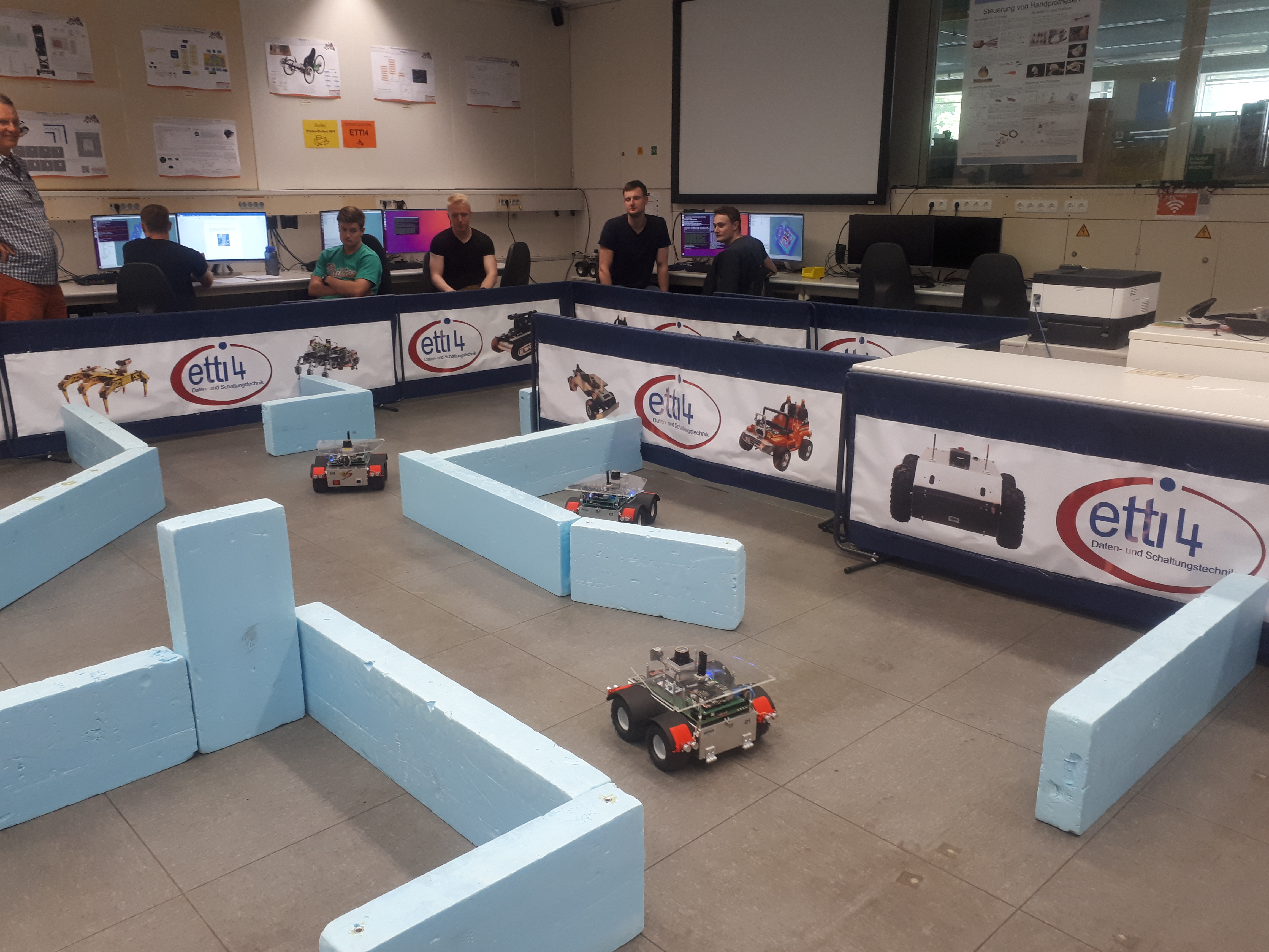 Im Rahmen eines Projekts sollen die in Teams eingeteilten Studierenden eine vorgegebene Aufgabe zur Steuerung eines autonom agierenden Fahrzeugs eigenständig lösen. Die Planung der Aufgabe obliegt den Teams. Zur Lösung der Aufgabe sind die Inhalte aus den übrigen Modulen der Vertiefungsrichtung "Autonome Intelligente Systeme" heranzuziehen. Es sind Algorithmen zur Lokalisierung und Mapping (SLAM), zur Pfadsuche und zur Steuerung auszuwählen, einzusetzen und zu konfigurieren.