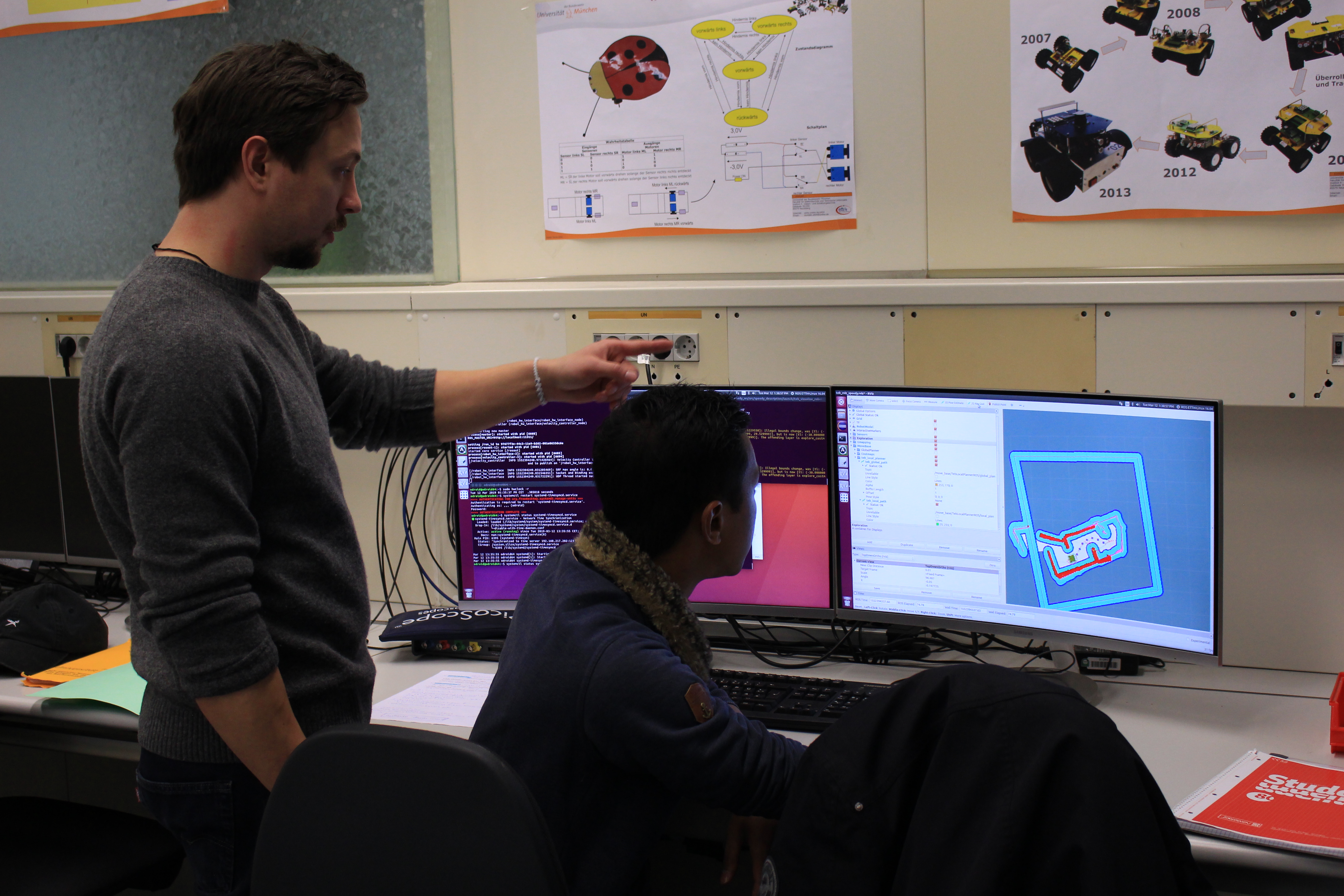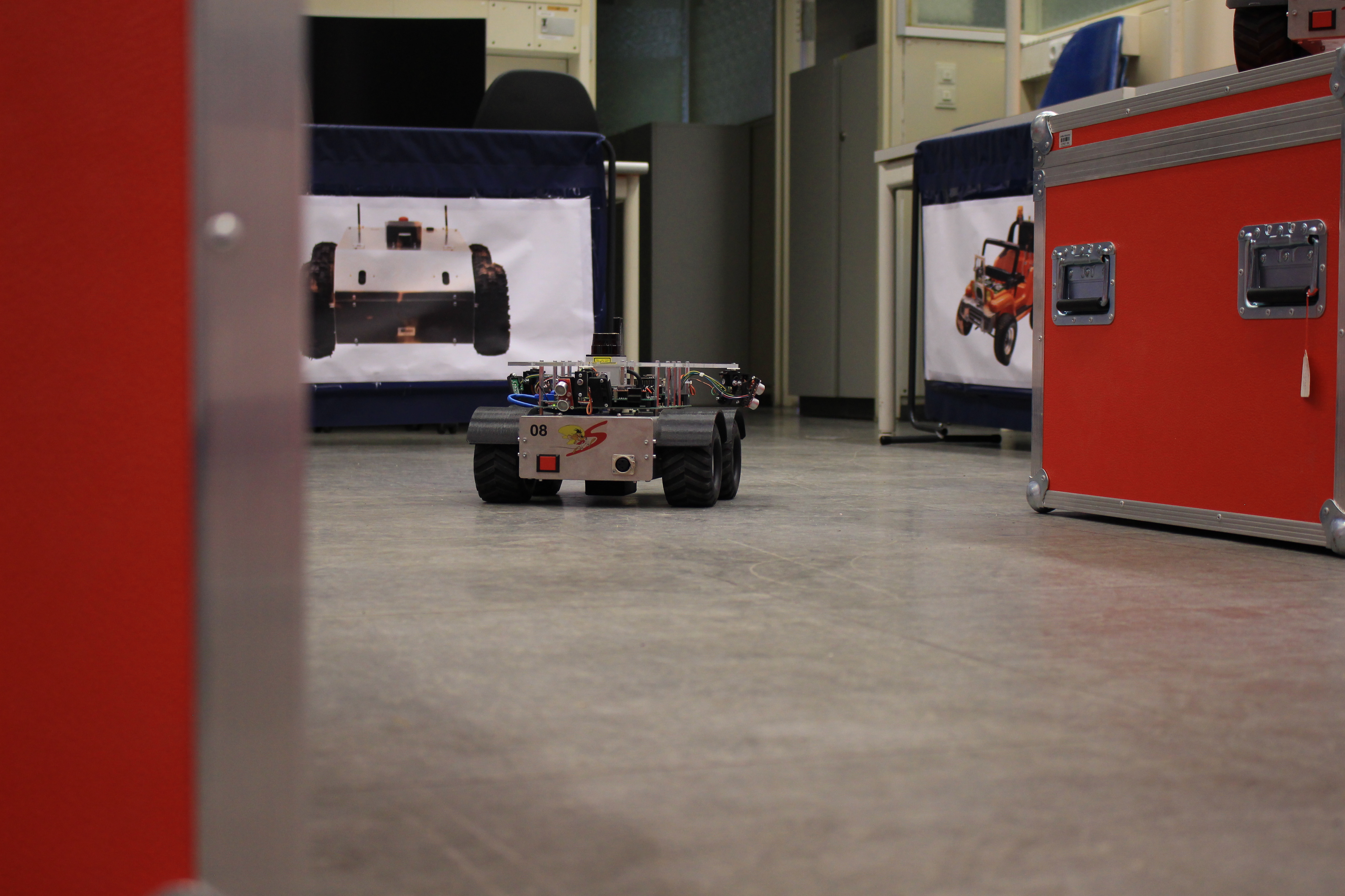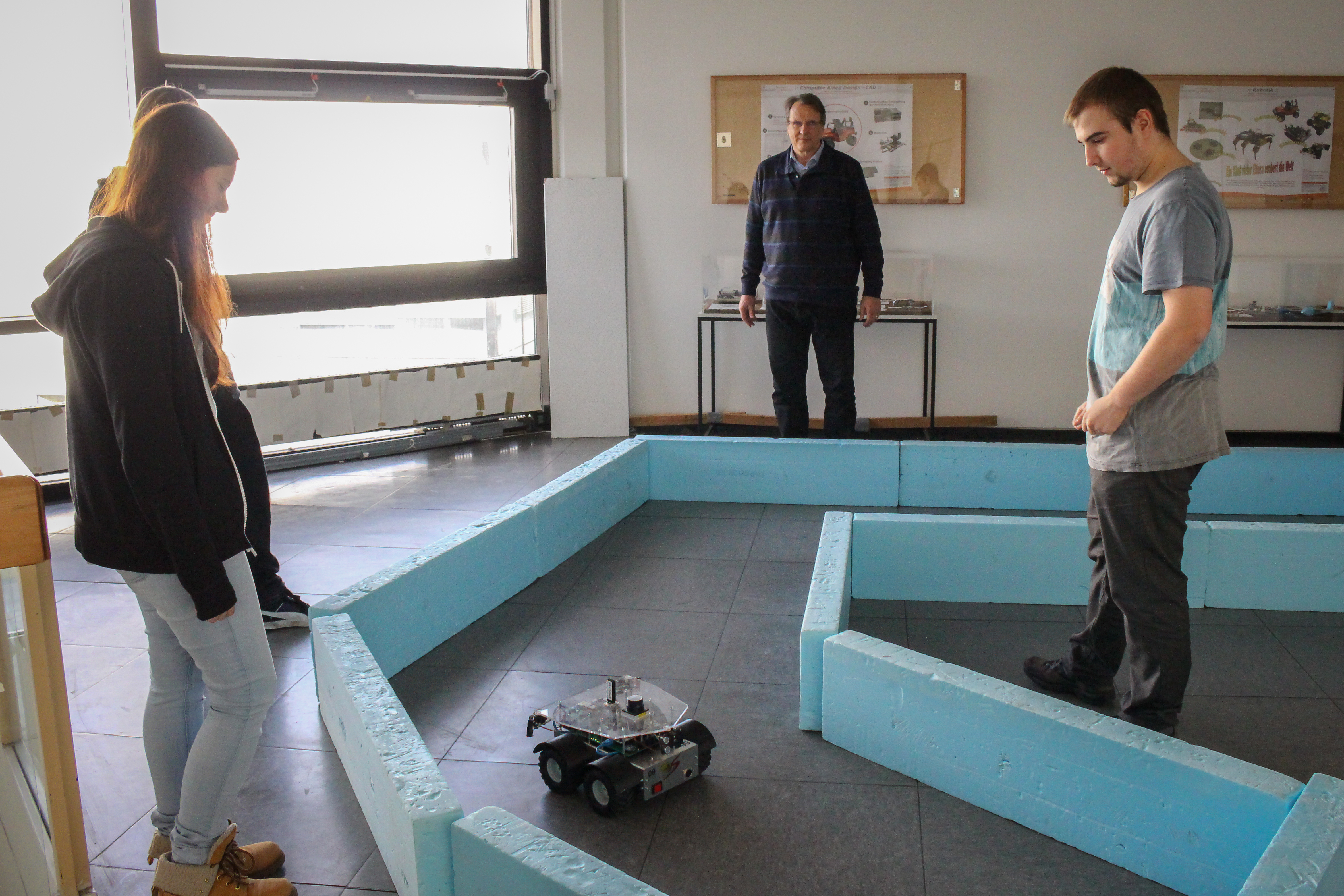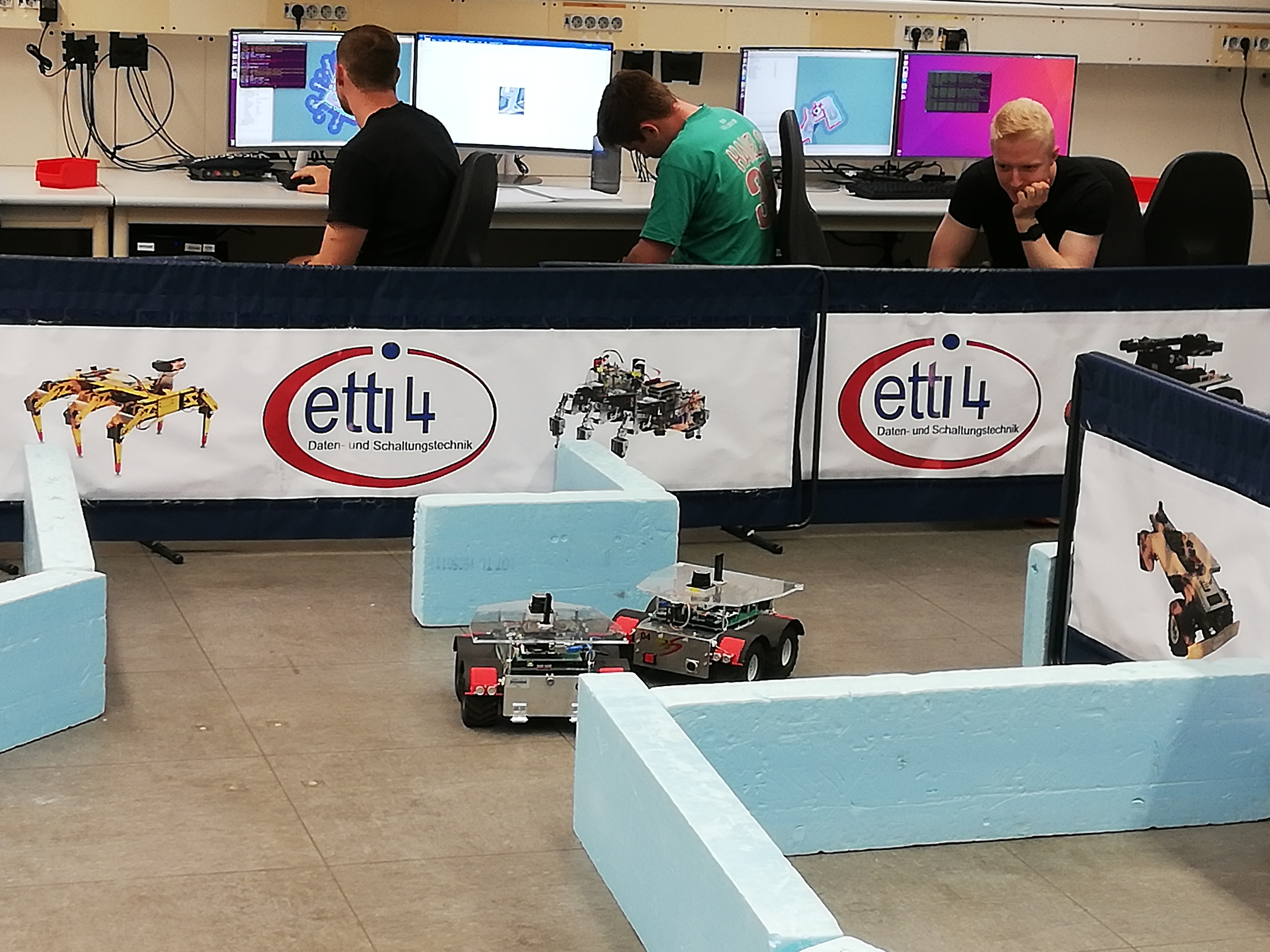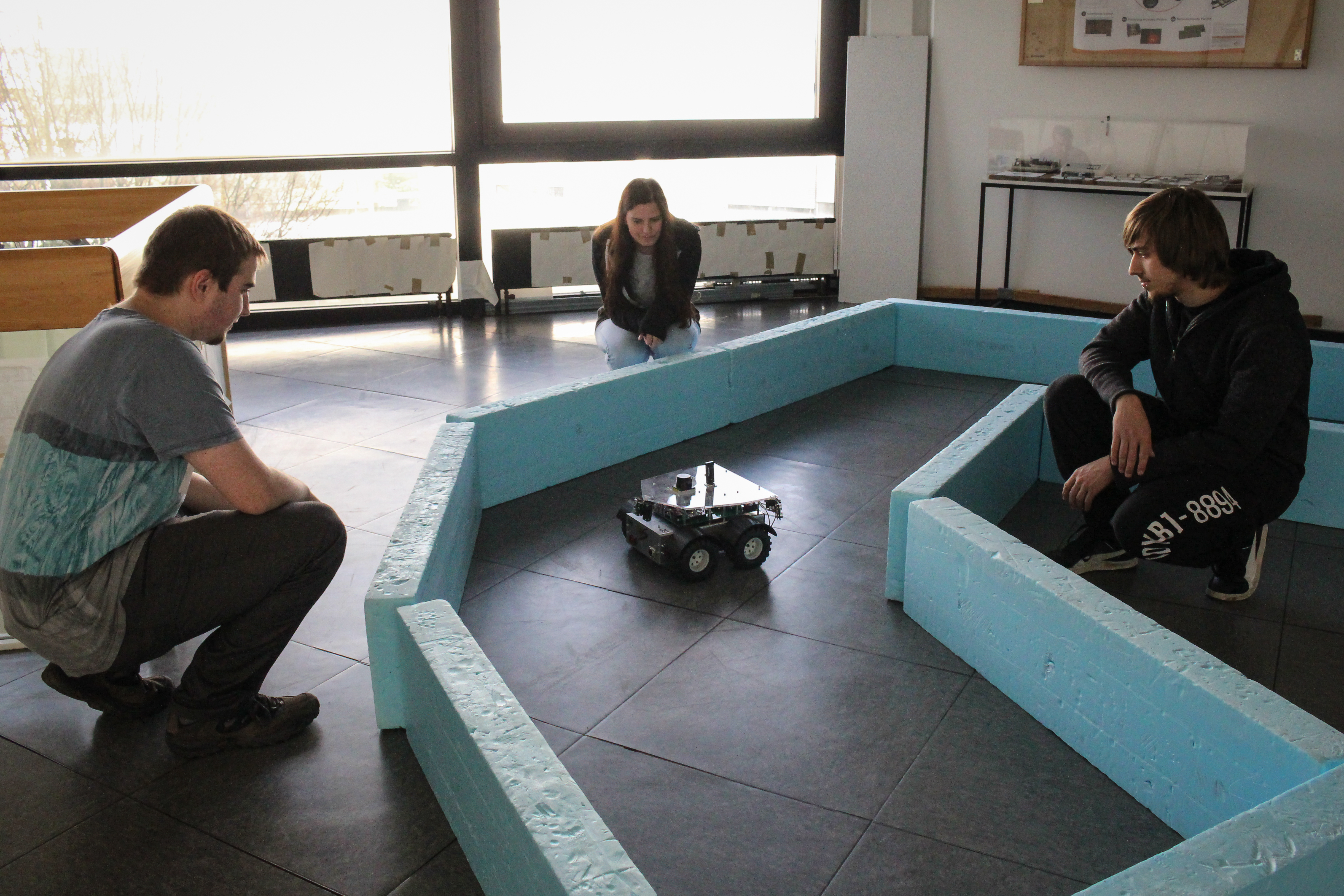 Im Rahmen eines Projekts sollen die in Teams eingeteilten Studierenden eine vorgegebene Aufgabe zur Steuerung eines autonom agierenden Fahrzeugs eigenständig lösen. Die Planung der Aufgabe obliegt den Teams. Für die praktische Umsetzung der Aufgabe ist ein autonom agierendes Roboterfahrzeug (Vierradfahrzeug ohne Lenkung – 4WD) zu programmieren. Die Steuerung des Roboters erfolgt mit ROS (Robot Operating System – ROS.org).