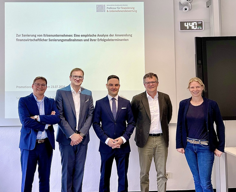Am 23.07.2024 hat Herr Sebastian Wünsche seine Dissertation mit dem Titel "Zur Sanierung von Krisenunternehmen: Eine empirische Analyse der Anwendung finanzwirtschaftlicher Sanierungsmaßnahmen und ihrer Erfolgsdeterminanten", betreut von Prof. Dr. Andreas Schüler, erfolgreich verteidigt. Die Arbeit sucht eine Antwort auf die wichtige wie zeitlose Frage, wie Krisenunternehmen wirksam saniert werden können. Herr Wünsche untersucht auf Basis einer einzigartigen Datenbank zu über 300 Sanierungsfällen die Einsatzhäufigkeit und Effektivität finanzieller Sanierungsinstrumente. Die Ergebnisse liefern auch wertvolle Handlungsempfehlungen für die Sanierungspraxis. |