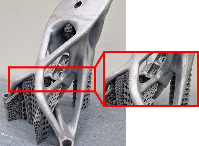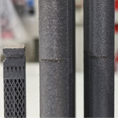 Abbildung 1: Mittels PBF-LB/M gefertigte Kickboardachse aus AlSi10Mg mit Standmarken als Resultat einer ungeplanten Prozessunterbrechung