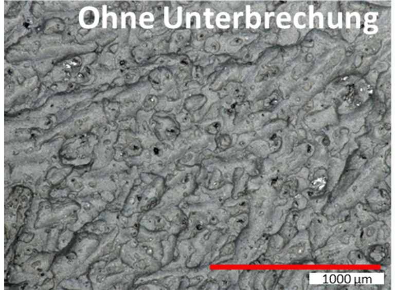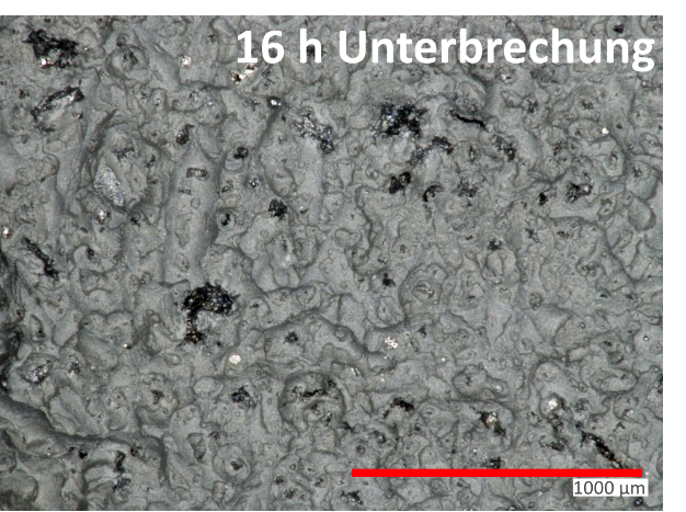 In ersten Studien wurde ein Stromausfallszenario mit einem daraus resultierenden Maschinenstillstand von 1 bis 16 Stunden betrachtet [13]. Nach Ablauf der jeweiligen Unterbrechungszeit folgte eine definierte Fortsetzungsprozedur sowie die Fertigstellung der Proben.