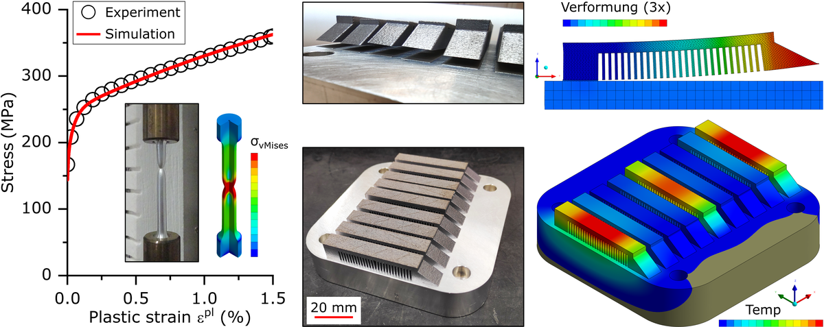 Mit verfügbaren Finite-Elemente-Modellen kann der schichtweise Aufbauvorgang simuliert und die prozessbedingten Eigenspannungen und Verformungen abgeschätzt werden. Allerdings beruhen diese Modelle auf stark vereinfachten Annahmen zum realen Prozessablauf, was die Vorhersagequalität beeinträchtigt und daher oftmals einen großen Umfang an Vorversuchen notwendig macht, um maßhaltige Bauteile realisieren zu können.