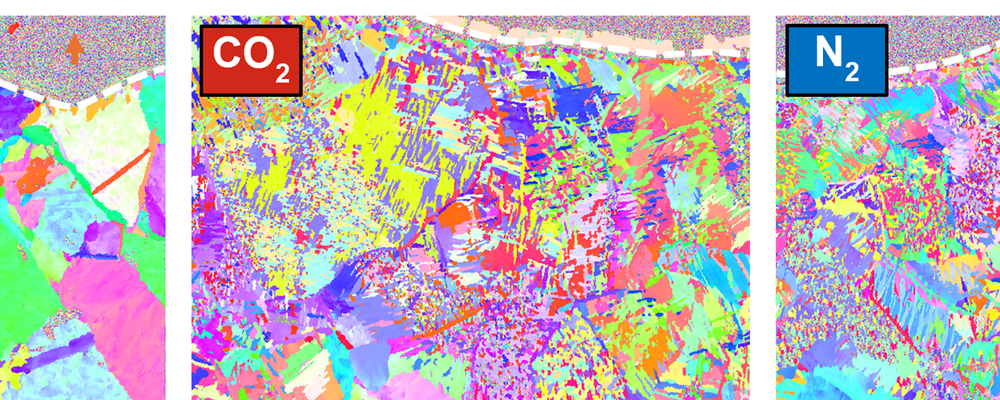 Metallbasierte additive Fertigungsprozesse werden in inerter Atmosphäre (Argon, Helium) durchgeführt, um einerseits eine unerwünschte Oxidation der Werkstoffe zu verhindern und andererseits Prozesssicherheit sicherzustellen. In diesem Projekt wird die inerte Schutzgasatmosphäre durch etwas reaktivere Atmosphären wie Kohlendioxid und Stickstoff ersetzt, mit dem Ziel einen Teil der Prozessgase während des Druckens aufzunehmen. Durch Hinzulegieren reaktiver Elemente, wie Titan, ist eine Reaktion der Prozessgase mit dem Werkstoff beabsichtigt um einen in-situ Nanopartikel (z.B. Ti-Oxid und -Nitrid) verstärkten Werkstoff herzustellen. Hierbei wird zum einen untersucht inwiefern die Material-Gas-Wechselwirkung die während additiven Fertigungsprozessen (PBF-LB und DED-LB) von der Werkstoffzusammensetzung, Fertigungsparametern und Schmelzbadgröße und -lebensdauer bedingt ist. Zum anderen werden die Mikrostruktur und Eigenschaften der hergestellten in-situ Metall-Matrix-Verbundwerkstoffe untersucht. Somit könnte die für die Prozesssicherheit notwendige Prozessatmosphäre genutzt werden, um Werkstoffeigenschaften lokal im Bauteil während des Druckjobs beeinflussen zu können.