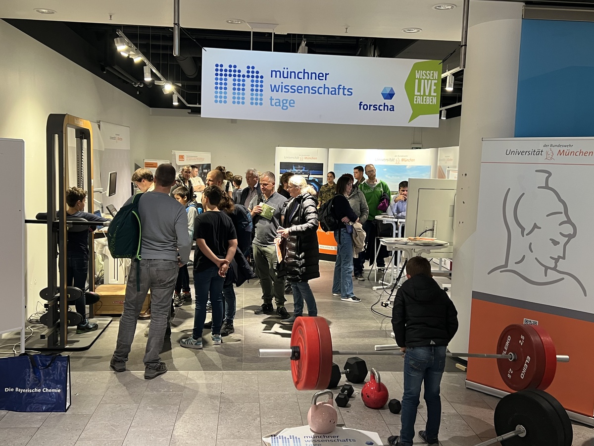 Ob sportbiologische Tests oder virtuelle Entdeckungsreisen – die drei Projekte der UniBw M lockten vom 10. bis 12. Oktober 2025 zahlreiche Interessierte an den Messestand im FORUM Schwanthaler Höhe. Rund 12.000 Besucher – ein Besucherrekord laut den Organisatoren – informierten sich über neue wissenschaftliche Projekte, experimentierten selbst und lernten so Forschung und Wissenschaft auf spielerische Weise kennen.