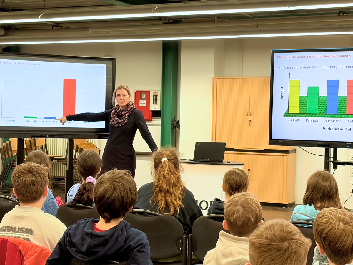 Prof. Silja Hoffmann von der Professur für Intelligente, multimodale Verkehrssysteme an der Fakultät für Bauinngenieurwesen und Umweltwissenschaften der Universität der Bundeswehr München (UniBw M) hat am 25. März 2026 die erste Kinderuni-Vorlesung des Jahres gehalten.