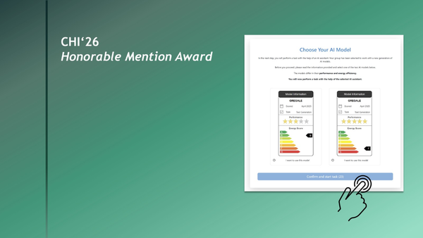 Honorable Mention Award bei der CHI‘26 Unser Beitrag zur CHI'26 wurde mit einem Honorable Mention Award ausgezeichnet.
