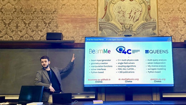 Workshop in Udine Strengthens German–Italian Collaboration IMCS was actively represented at the 3rd German–Italian GACM–GIMC Workshop in Udine, where Alexander Popp co-organized the event and, together with Sebastian Brandstaeter, presented current research on mixed-dimensional modelling and probabilistic analyses in computational mechanics.