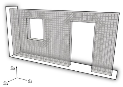 Sparsity pattern of the system matrix Model of a concrete wall with steel rebar