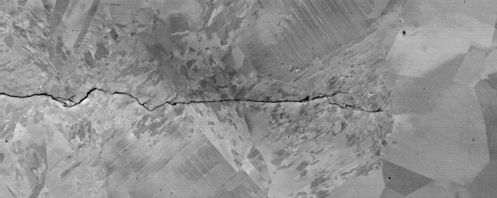 Fundamental for this research are fatigue tests with so-called SEN specimens (Single-Edge-Notched Flat Specimen) with the hydraulically controlled testing machine ERIKA (fatigue crack propagation in corrosive atmosphere). The existing crack length can be calculated insitu with the help of a DC potential probe and can also be used directly for test control. For further information about the crack, the fracture surface is examined by light or electron microscopy to obtain information about the position and number of cracks and their coagulation.