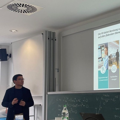 Im Rahmen der Tagung beteiligte sich Julia Thaler aktiv an mehreren Programmpunkten. Sie moderierte gemeinsam mit Stephan Kaiser (Universität der Bundeswehr München) und Georg Loscher (German University of Digital Science) die übergreifende I-WK „Resilienz für den öffentlichen Sektor: Impulse aus der Forschung zu personellen und organisationalen Herausforderungen in Zeiten von Digitalisierung und Fachkräftemangel“. Impulsgeberinnen aus der Praxis waren: