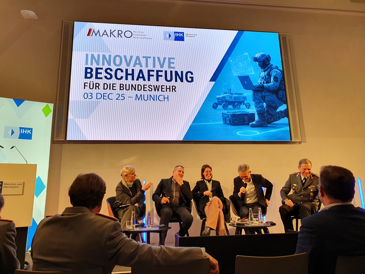 On December 3, 2025, the Munich Working Group of Reserve Officers (MAKRO e.V.) organized an exciting panel discussion at the Chamber of Industry and Commerce in Munich and Upper Bavaria on the topic of “Innovative procurement for the German Armed Forces - navigating the balance between law, technology, and operational reality.” Representatives of the German Armed Forces highlighted the challenges and adjustments that need to be addressed and how rapid contact between the German Armed Forces, industry, and research units can increase the speed of development.
