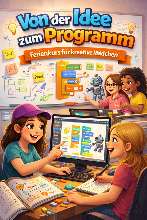 Hinter jedem Programm steckt eine gute Idee und die Vorstellung von Abläufen um vom Start zu Ziel zu kommen. Ausgehend von einem Problem entwickeln wir verschiedene Abläufe in der Theorie, die dann programmiert werden mit der visuellen Programmiersprache Scratch. Wie im täglichen Leben gilt auch in der Informatik verschiedene Wege führen zum Ziel, also schauen wir wer am effizientesten arbeitet und am schnellsten am Ziel ist. Der Komplexität sind keine Grenzen gesetzt, aber führt mich das dann auch schnell ans Ziel? Am Ende dieses Kurses können die Teilnehmerinnen Probleme mittels Handlungsabläufe visualisieren und diese mit informatischen Grundkonzepten erfolgreich implementieren.