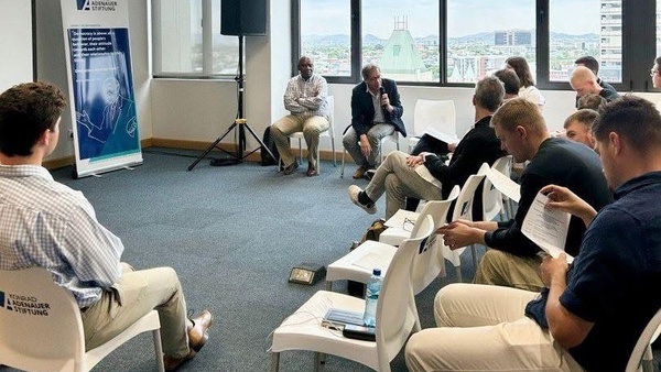 In zahlreiche Begegnungsterminen und intensiven Gesprächsrunden mit politischen und zivilgesellschaftlichen Akteuren konnten die Studierenden unterschiedlichste Perspektiven auf Land und Leute kennenlernen. Das Spektrum unserer Gesprächspartner reichte von den Botschaftern Deutschlands und der EU über das Frauenprojekt Penduka und Bewohnerinnen und Bewohner der ‚informal settlements‘ um die Windhoeker Vorstadt Katutura bis hin zu deutschsprachigen Namibierinnen und Namibiern unterschiedlicher Hautfarbe.