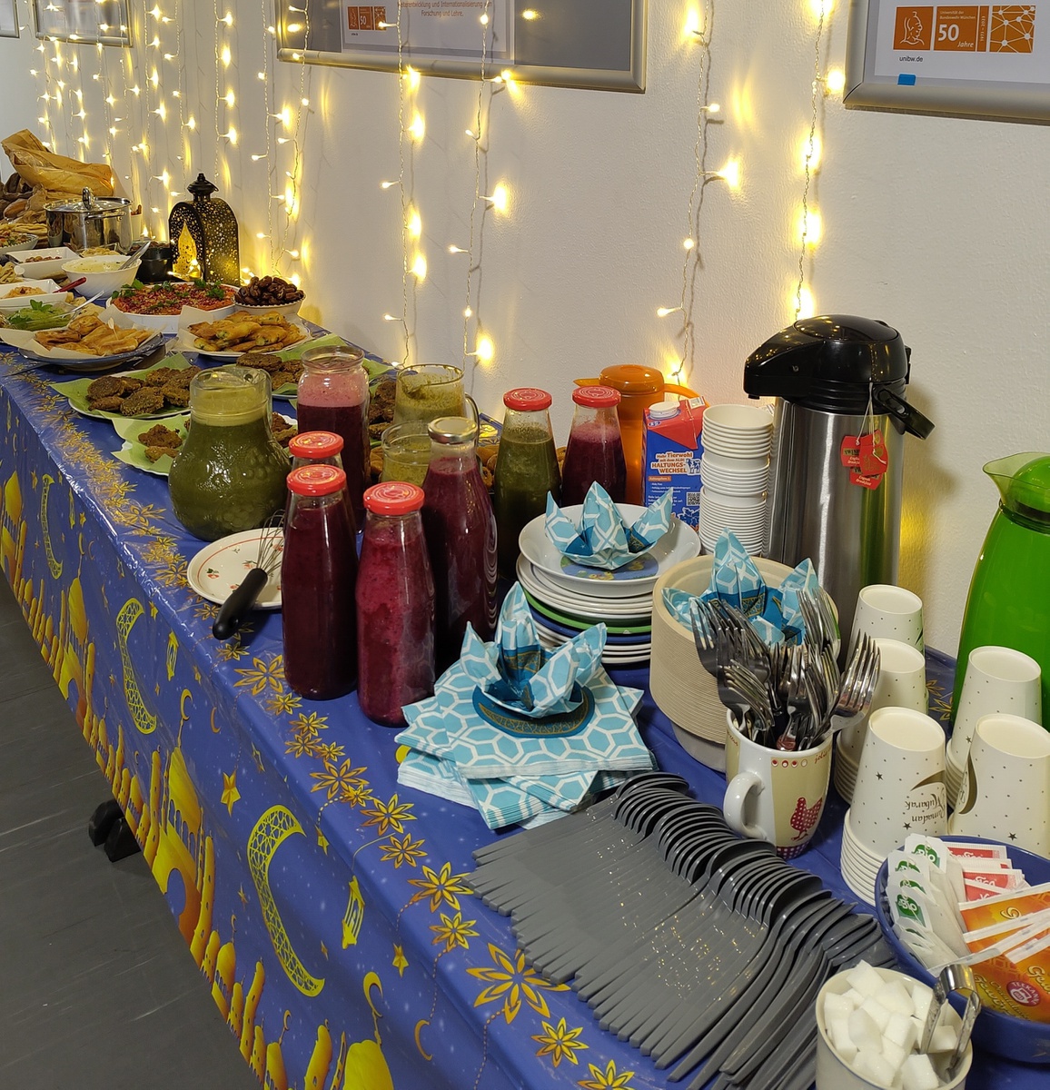 Unter dem Motto Kultur und Kulinarik veranstalteten unsere Arabisch- und Französischlehrkräfte mit den Studierenden des Studiengangs Kulturwissenschaften am 14. März ein gemeinsames Iftār am Sprachenzentrum. Das Iftār bezeichnet das traditionelle Fastenbrechen der Muslime nach Sonnenuntergang während des Fastenmonats Ramadan.