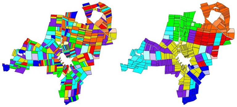In vielen ländlichen Regionen pflegt eine kleine Zahl von Landwirten eine große Anzahl von kleinen Parzellen, die über eine weite Fläche verstreut liegen. Es resultieren hohe Fahrtkosten und und ein unprofitabler Einsatz der benötigten schweren Maschinen. Abhilfe könnte eine Flurbereinigung schaffen, welche aber häufig unerwünschte Nebenwirkungen mit sich bringt. Wir entwickeln mathematische Modelle und Algorithmen zur Flurbereinigung, welche nicht die Ergebnisse eines klassischen Flurbereinigungs-Prozesses verwenden.