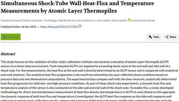 New publication of measurements by ALTP in Journal of Thermophysics and Heat Transfer