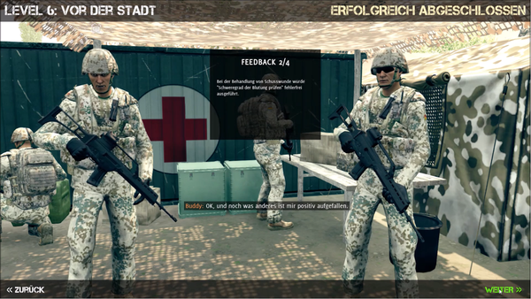 Überblick Der Spieler erhält die relevantesten Feedback-Mitteilungen von zwei Ausbildern übersichtlich erläutert, bevor die zwei darauf folgenden Replay-Elemente die weiteren Details zeigen.
