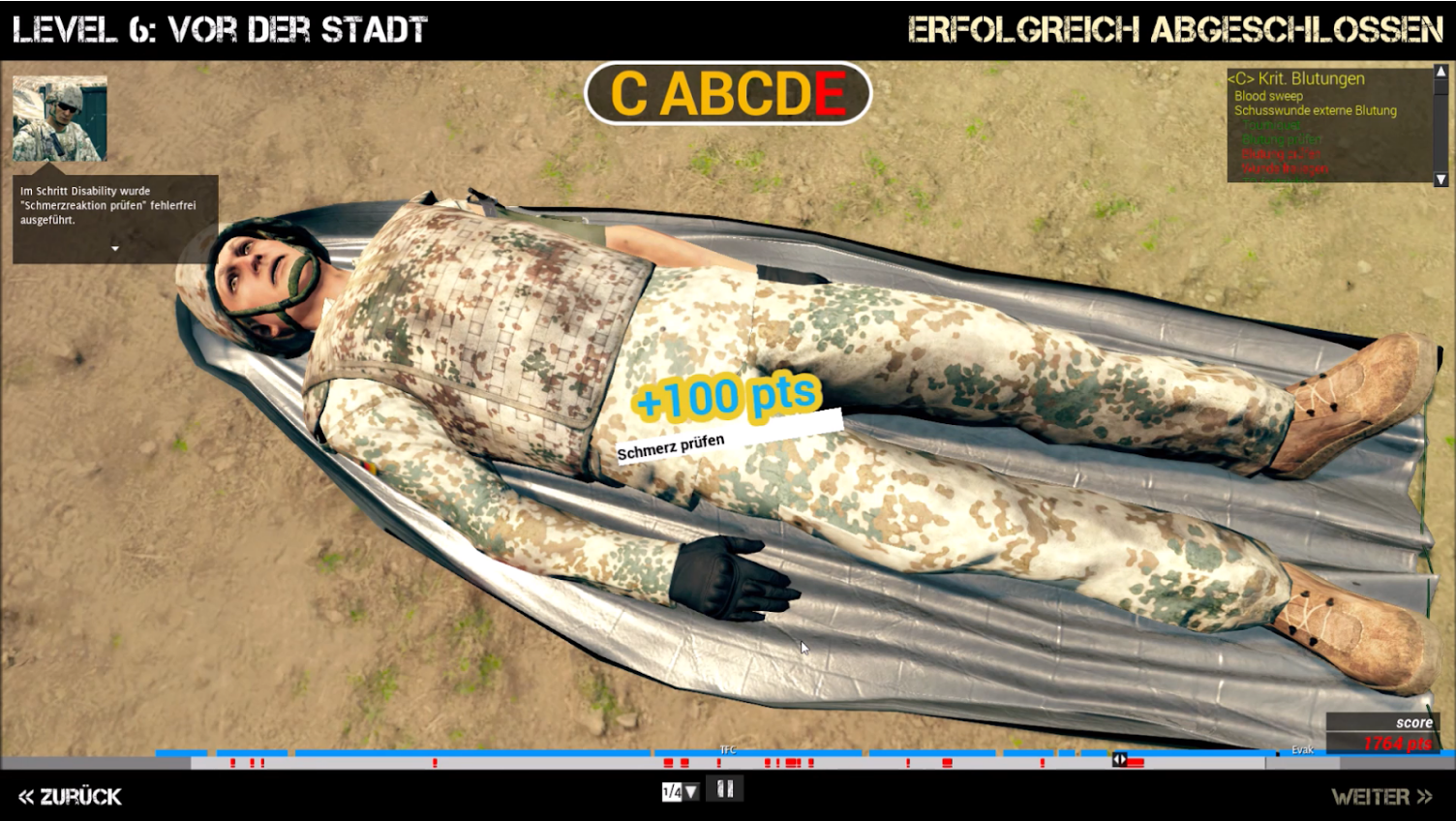 Behandlungs-Replay Dieses Replay zeigt die Aufzeichnung der Behandlungsschritte des Spielers. Es werden zusätzliche Informationen über die Aktionen gelistet.