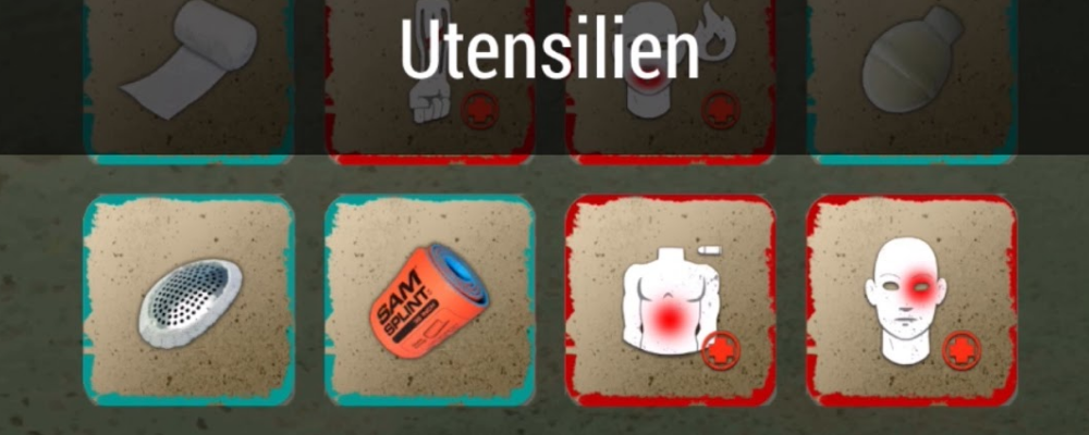 Im Bild ist ein Beispiel für Traumata und entprechend anwendbaren Utensilien dargestellt.